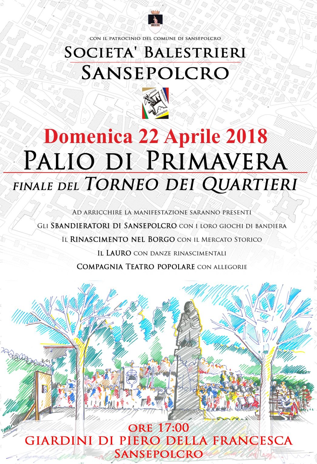 FINALE DEL TORNEO DEI QUARTIERI E PALIO DI PRIMAVERA 2018 NEL POMERIGGIO DI DOMENICA 22 APRILE, DI NUOVO AL GIARDINO DI PIERO DELLA FRANCESCA